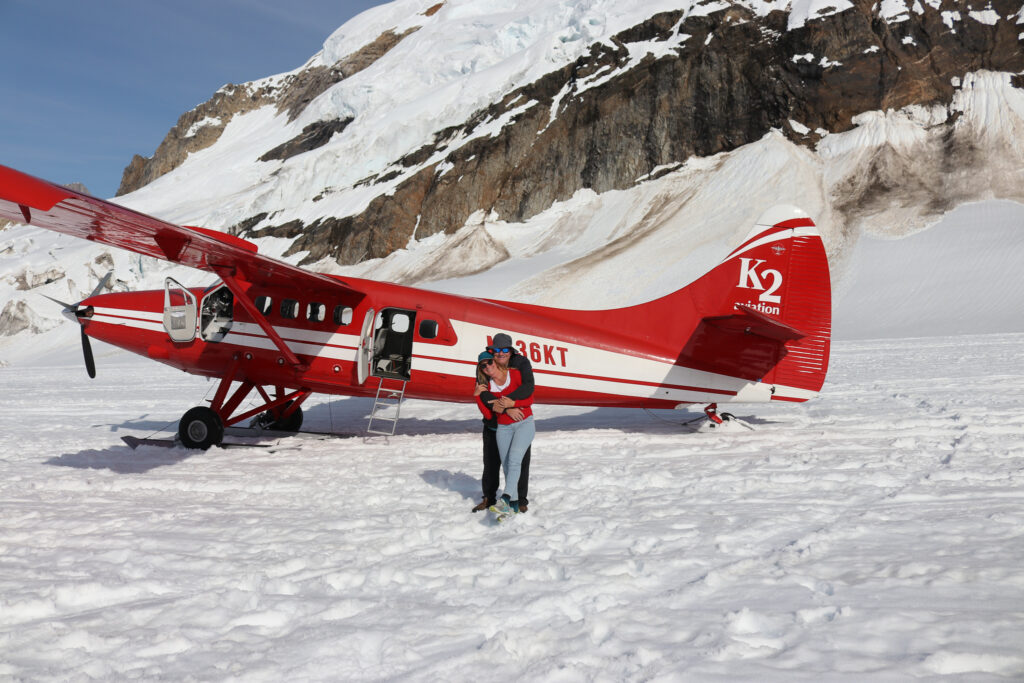 At K2 Aviation, we met our pilot Chad, who provided a safety briefing.  When he asked who wanted the co-pilot seat, I quickly raised my hand. We had a 5% day, which means only 5% of the year do you get a day where you can see the top of Denali.  This equates to about 18 or less days a year. Because the weather was perfect, we flew all the way around to the backside of Denali. It’s impossible to understand the scale of the mountains even from the air. Denali is 20,000 feet high and we flew at 14,000 feet. Below were glaciers, huge crevasses that looked like tiny tears in a piece of material and bright teal blue pools. Chad skillfully landed us right on the glacier where we got out, played in the snow and took photos.  There are no words that explain how beautiful it was.