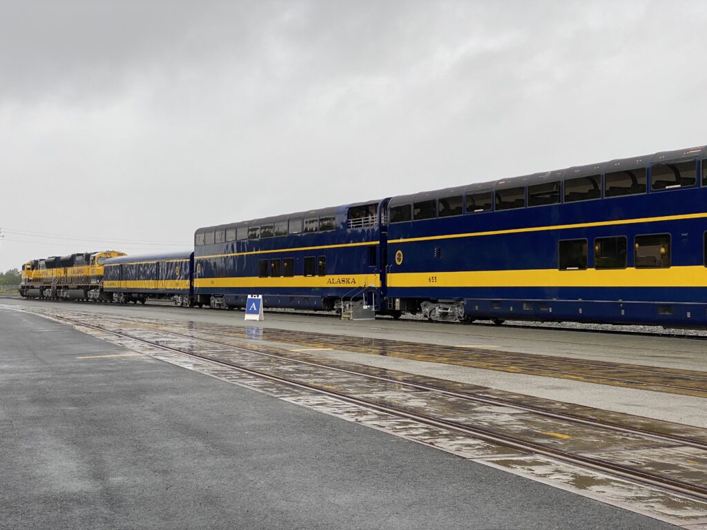 Ninja tips: The train leaves Anchorage at 6:50am and comes back at 6:00pm. There was a shuttle when we got off to take us to the port and back again, which was great but there was no time in between to walk around. On the train, there is a cafe that offers drinks and limited food service.  If you have Goldstar tickets, you sit in luxury cars and can go to the dining car.  We didn’t purchase these as they are pretty expensive.  The last car has an open-air balcony to stand on.