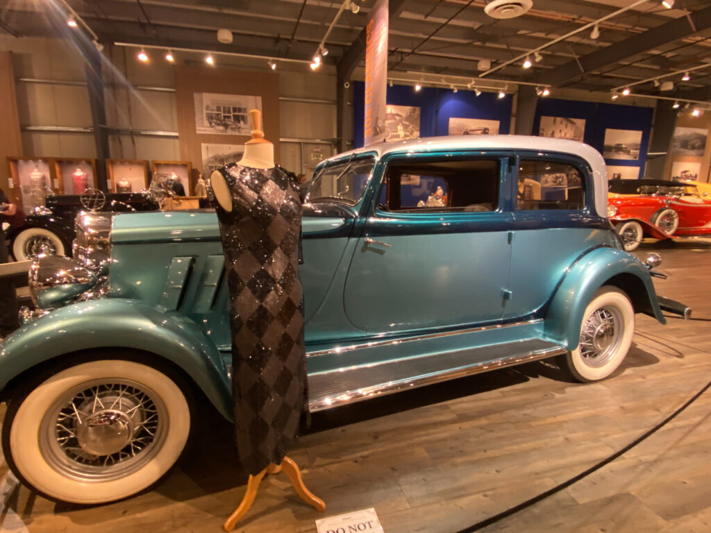 The next day, being wiped out, we took it easy and started our day with a walk along the river.  Not sure what we wanted to do, we selected the Fountainhead Auto Museum. Score!  They have a huge, pre-WW2, all-American car museum. The cars are immaculate, being restored to their former beauty. My favorite was a baby blue 1933 Hupmobile.  The paint’s shine was created by adding fish scales to the paint.   The museum is brilliant in that there are a lot of cars for the automotive enthusiasts and on top of that includes one of my loves, vintage dresses that are from the same time period as the car.  Mike and I were both happy.