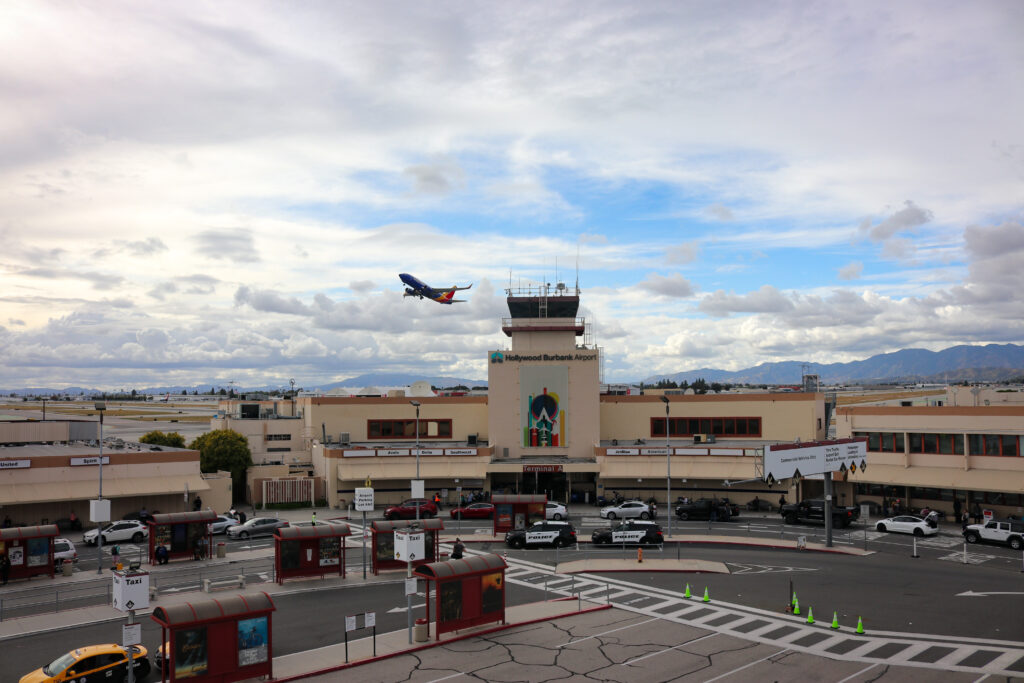 Staying in Burbank makes sense if you want to see Los Angeles.  The Hollywood- Burbank Airport is smaller than LAX and a lot faster. I can leave my office and be walking up to the gate in less than 20 minutes and that includes parking.
