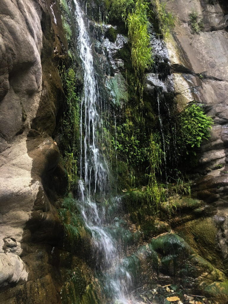 This is an easy walk and you cross the stream (A California river lol).  The trail is highly shaded and beautiful.  At the end, you’ll be rewarded with a lovely waterfall that cascades gracefully along green plants and moss.  We went in the early spring.  Parking is tight so its recommended to get there early.  From this same trailhead area, you can also reach Bronson Caves.