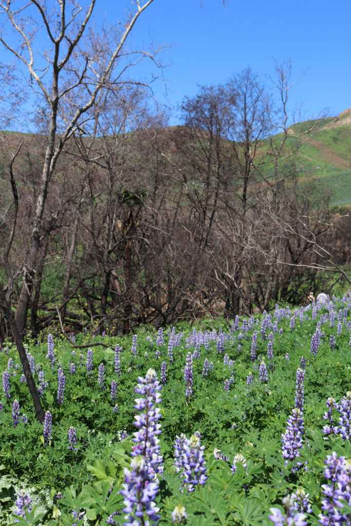 This hike gets crowded so if you don’t want to hike a long way from your parking spot to the trailhead, get their early.  Also have patience as its located right off Pacific Coast Highway and you may need to park here.  The hike is easy and pretty.  Parts of Malibu Canyon burned in 2018 but with the rains of 2019, vegetation is returning and the wildflowers along with the butterflies were beautiful.  At the end you’ll find the waterfall and its worth the time and effort to see.