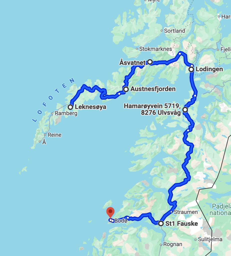 Lofoten is compact enough to choose one home base and explore from there. One day we drove west. Another day we explored east. On our final day, we made the full loop—east and then all the way back west—returning to Bodø. (You can see our exact stays in the itinerary.)